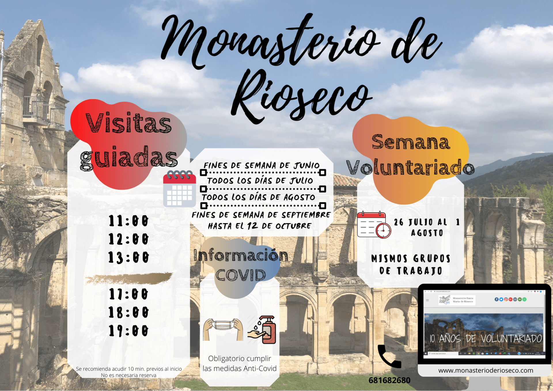 El monasterio de Rioseco se encuentra en el escondido Valle de Manzanedo, a pocos metros del pueblo del mismo nombre, en las Merindades, Burgos, siempre tiene sus puertas abiertas y se puede visitar el día y a la hora que se desee. Además, durante los meses estivales, los voluntarios de Rioseco organizamos sesiones de jornadas abiertas para ponerlo en valor y dar a conocer el trabajo del voluntariado.