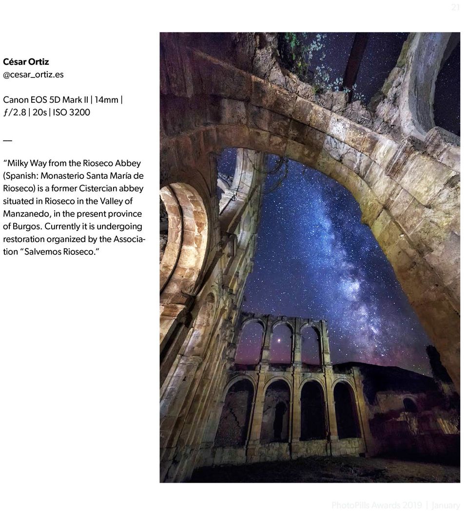 Todos los amantes de la fotografía conocen PhotoPills, el principal asistente personal para todos los asuntos fotográficos, que incluye multitud de herramientas para ayudar a la planificación y a la toma de las ideas creativas. Pero además de ayudar en la creación de las tomas, este año, han publicado un libro con las mejores fotografías programadas en 2019 con esta famosa app, y una de ellas es una foto tomada en Rioseco.